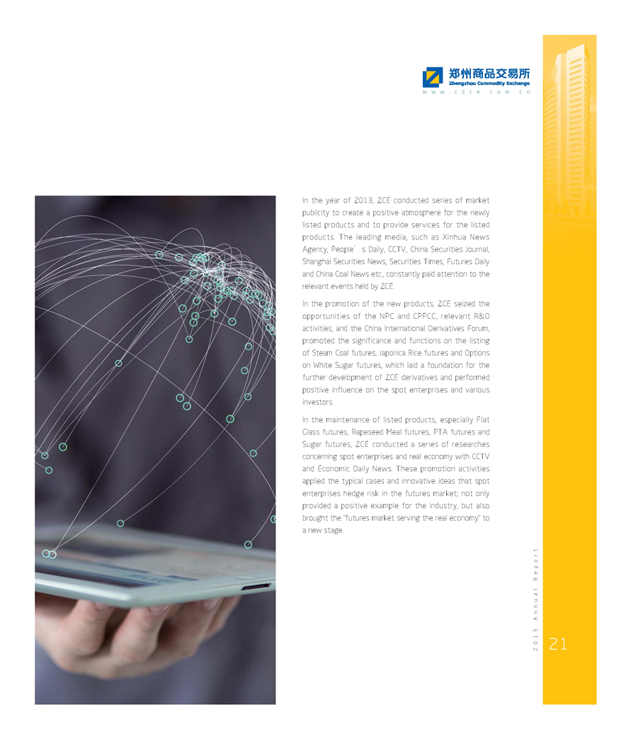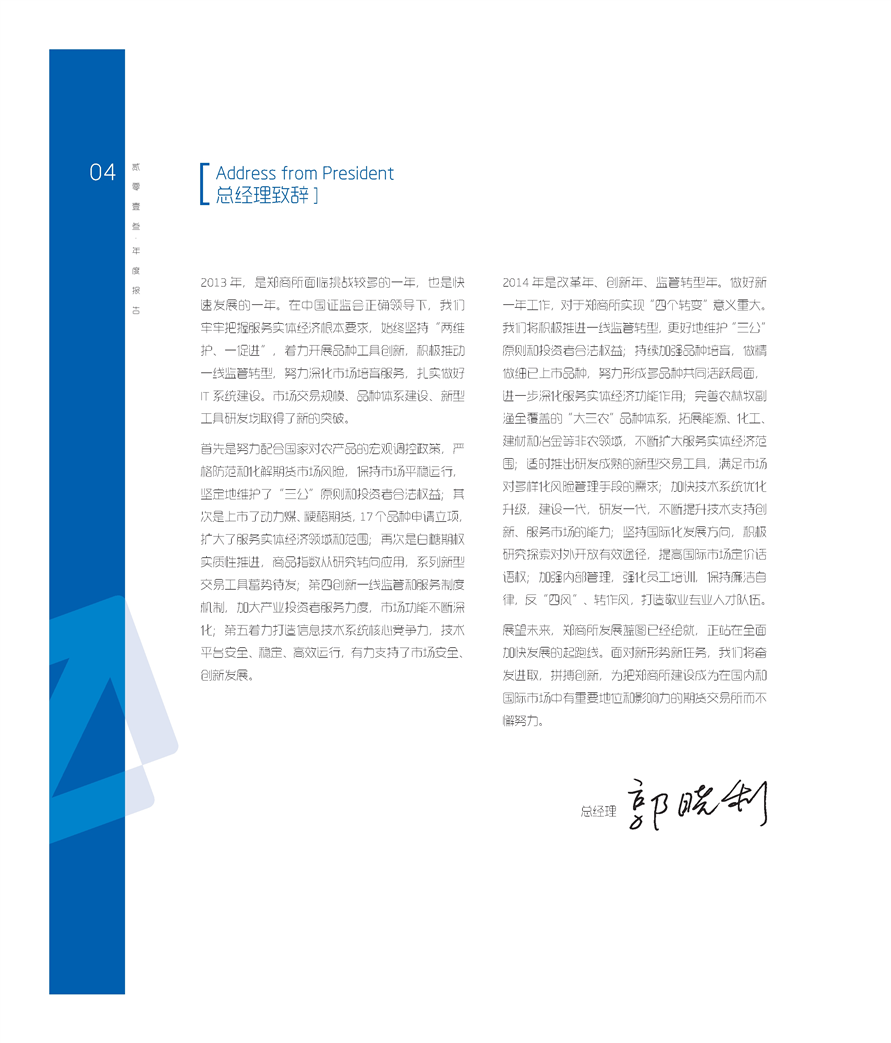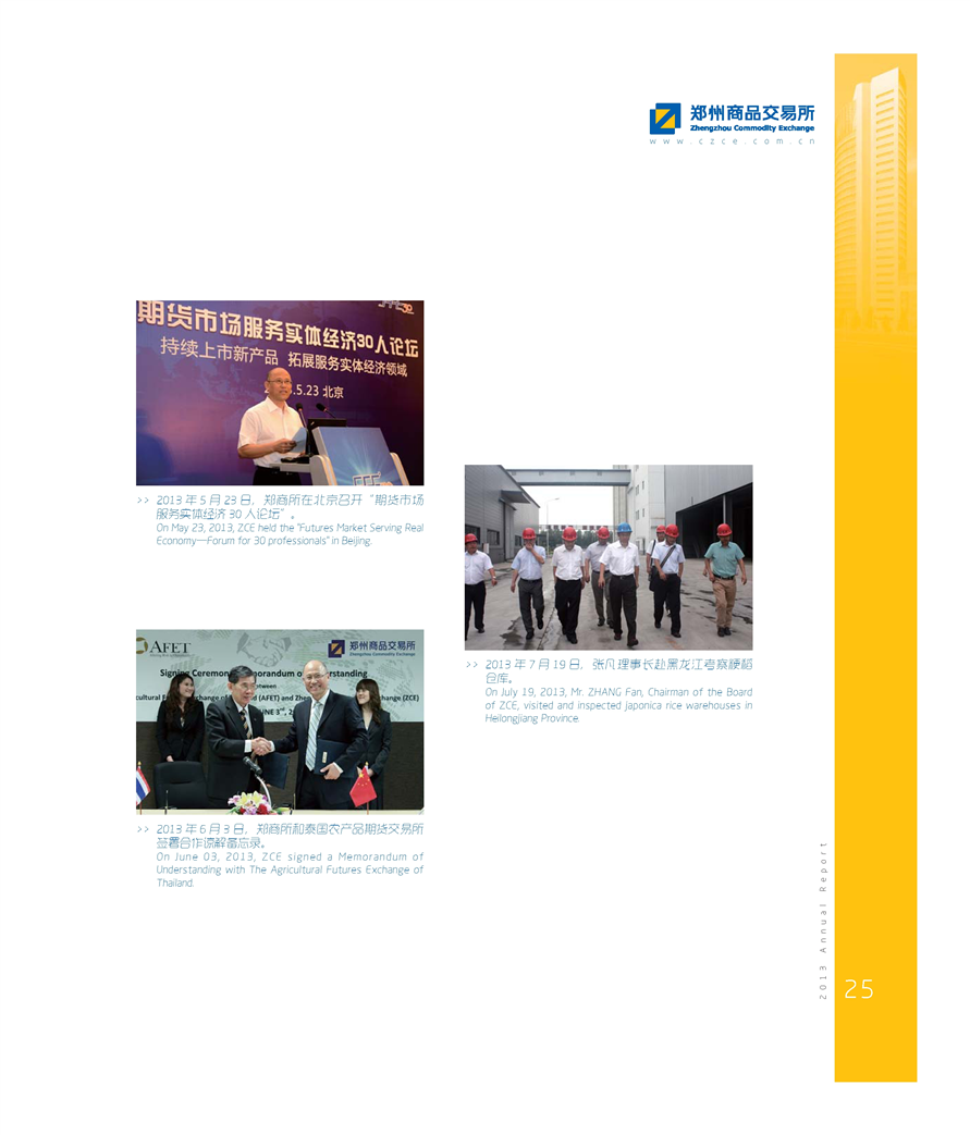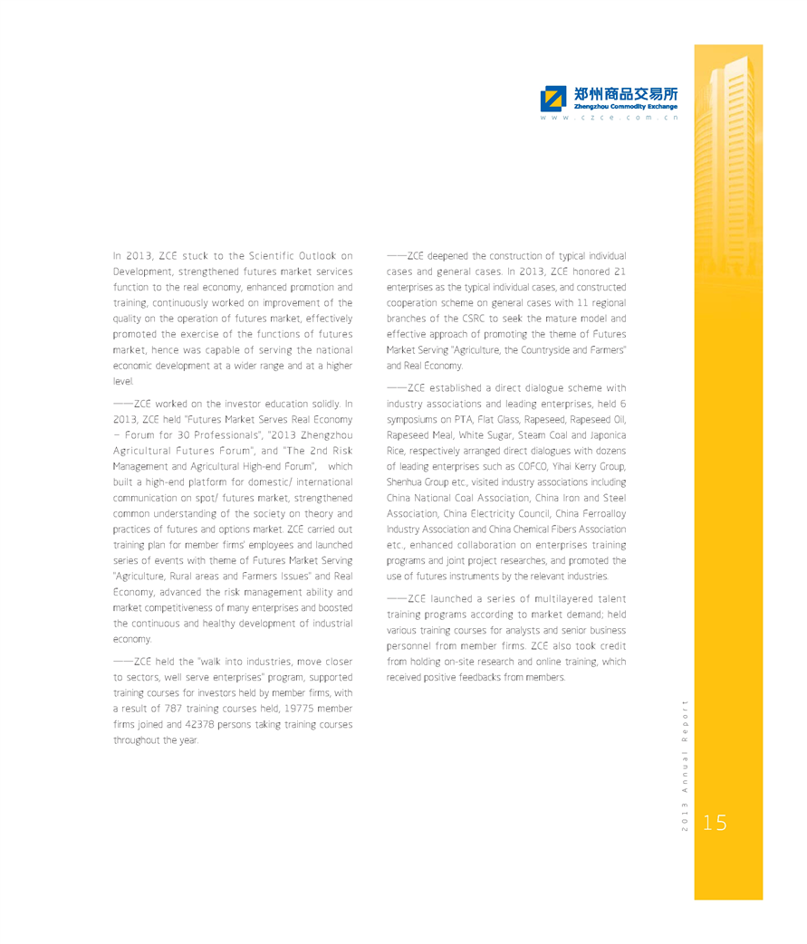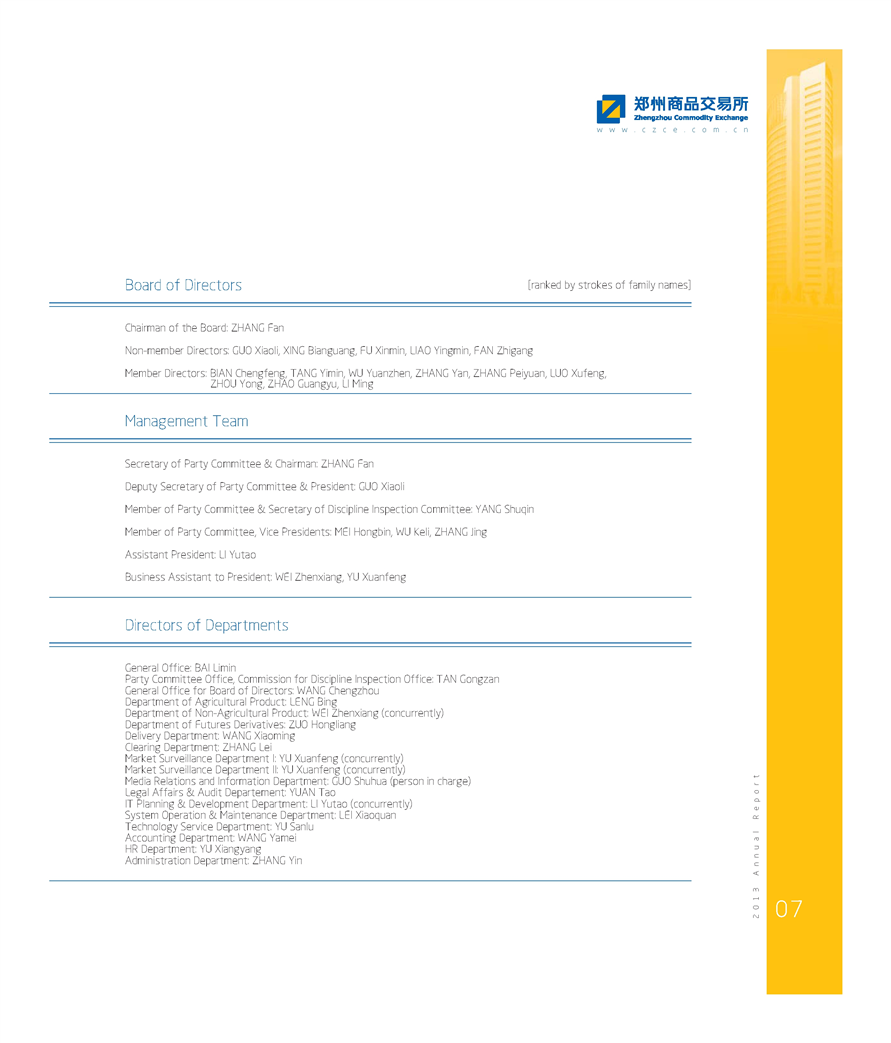 Zhengzhou Commodity Exchange (hereinafter referred to as ZCE) was founded in October, 1990. With the approval of the State Council, ZCE was established as a pilot exchange in China futures market and it is regulated by China Securities Regulatory Commission (CSRC).