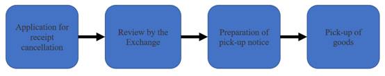 2. Issuing a pick-up notice. After the Exchange reviews the application for cancellation and issues Pick-up Notice, the member or customer shall promptly prepare an authentication password for thePick-up Notice.